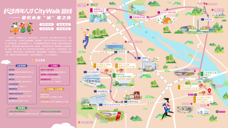 7条CityWalk路线依次为:青才启“新”记、文化科技交融、从烟火到星火 次元破壁之行、望见未来 “城”意之旅、硬核长沙行、浏YOUNG栖梦 焰耀前程、轻松看懂“新能源电池的一生”。它们精准聚焦青年关切,串联起长沙硬核产业的创新脉动、创业热土的蓬勃活力、安居温暖的民生温度与人文浪漫的独特底蕴,等待更多青年人才用脚步去解锁、用青春去续写属于自己与长沙的故事。