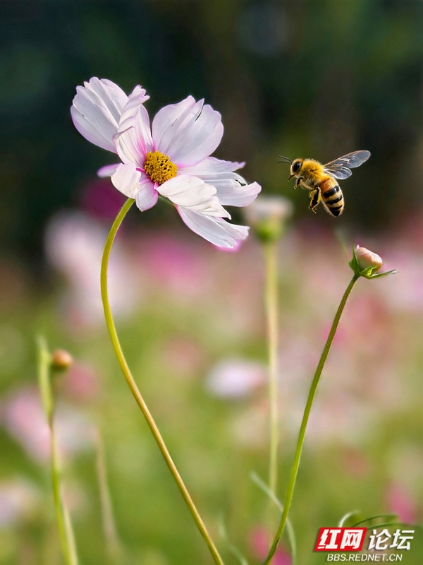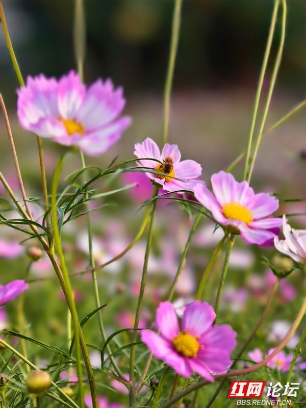 在安乡书院洲湿地公园,波斯菊宛如一群翩跹的精灵,在微风中无拘无束地摇曳起舞。