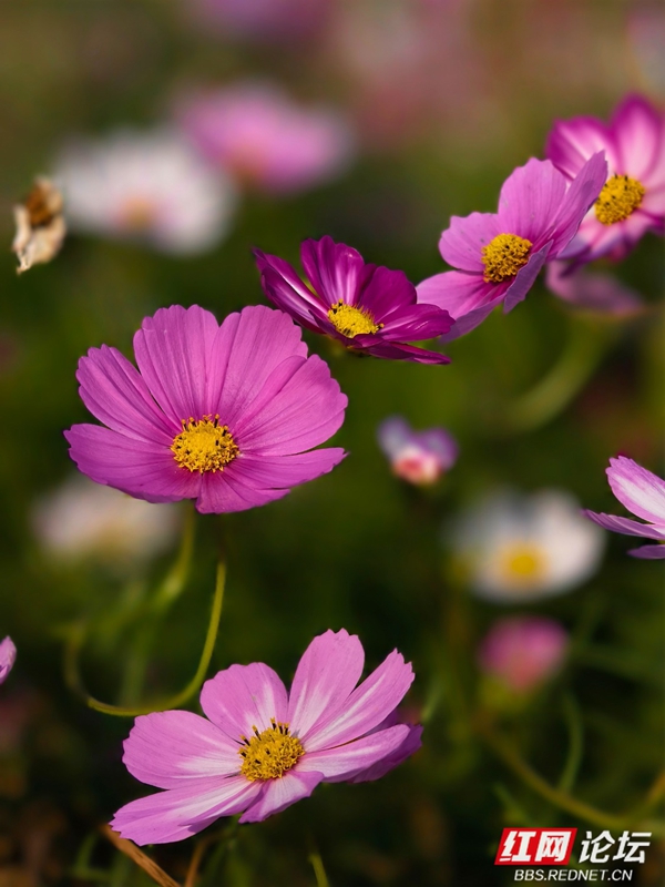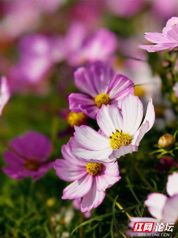 粉的娇柔、紫的浪漫、白的清雅,花瓣仿佛被阳光细细浸染,透出明媚而温暖的光晕。每一次轻盈的摆动,都像在低语一首欢快的歌谣,舞动生命的喜悦。它们不拘于形,不囿于境,肆意绽放,在湿地公园温润的怀抱中铺展出一片花的海洋——浪漫、热烈,又充满生机。每一缕飘散的芬芳,都揉进了乐观向上的气息,悄然拂过行人的心田,让人不自觉地放慢脚步,心头泛起温柔而轻快的涟漪。(图文/侯若平)