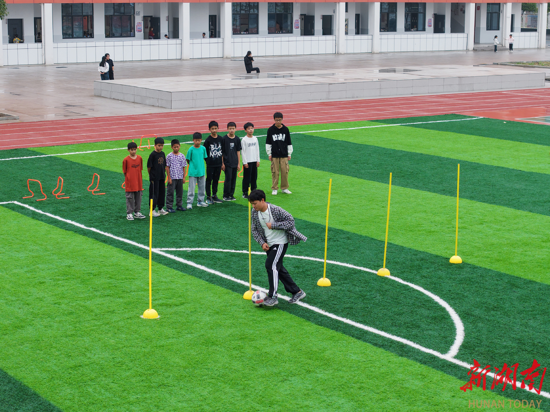 10月15日,在沅江市南大膳镇中心小学新建的足球场,孩子们在上足球课。张佳伟 摄