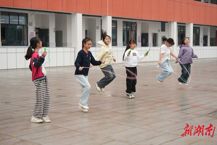 10月15日,在沅江市南大膳镇中心小学,孩子们在跳绳。张佳伟 摄