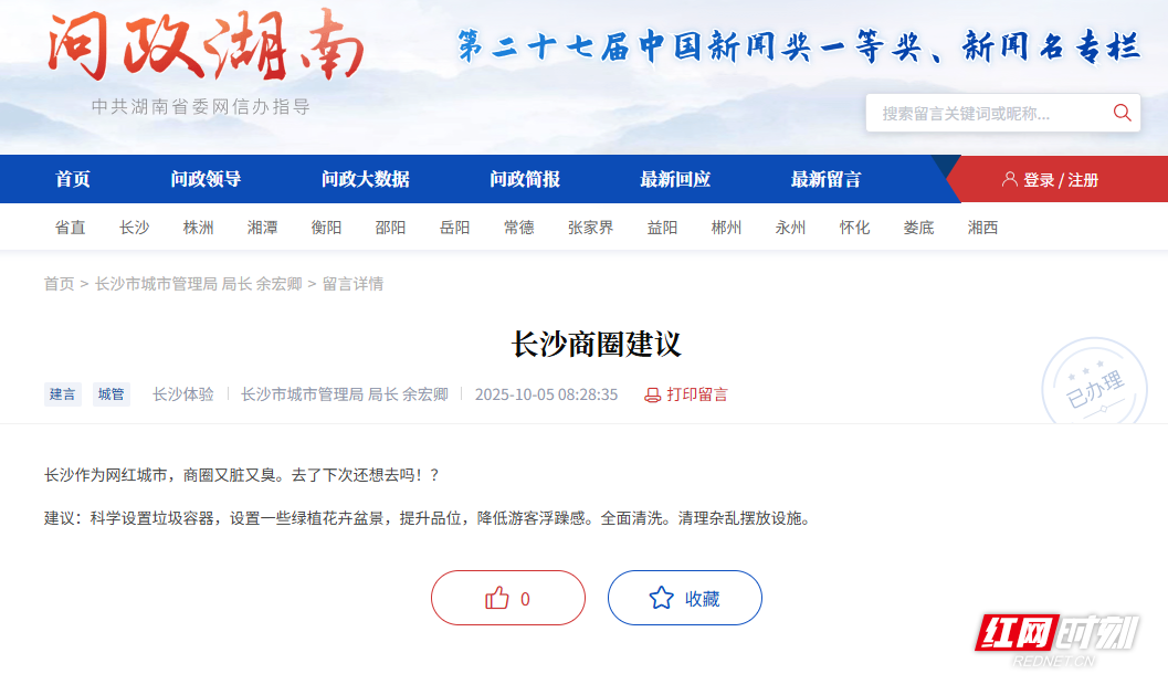 ►红网问政湖南平台:登录问政湖南页面留言发帖