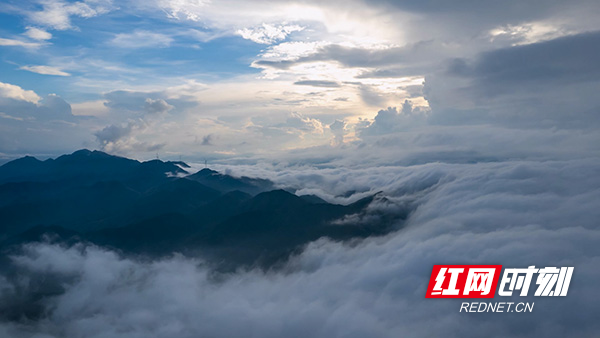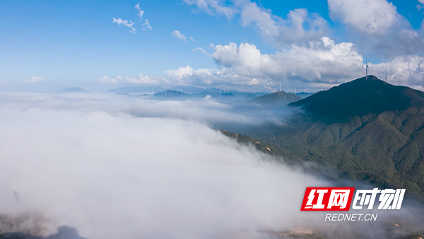 红网时刻新闻10月23日讯(通讯员 王玉珏 李雄)连日来,受冷空气持续南下影响,蓝山县云冰山持续出现壮美云海景观。透过无人机镜头俯瞰,只见雪白的云雾或翻过山巅如瀑布般直流而下,或穿过峡谷奔涌向前,与南下的冷空气形成对流之势。群峰在云海中若隐若现,起伏连绵,一座座高大的风车错落有致地矗立在山脊之上,云雾似有生命般穿越山峦奔涌而来,茫茫云海铺满整个天际,气势磅礴,蔚为壮观。