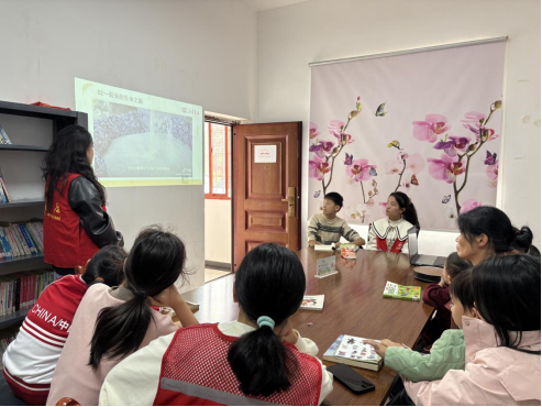 活动一开场,“丰收小游戏”便将现场氛围推向高潮。讲师刚抛出“大家说说家里种过、见过的粮食蔬菜”的问题,瞬间打开了孩子们的话匣子,清脆的回答声在书屋里回荡,连在门口帮忙维持秩序的村民们都跟着乐,原本安静的书屋瞬间变成了充满童趣的“丰收小天地”。