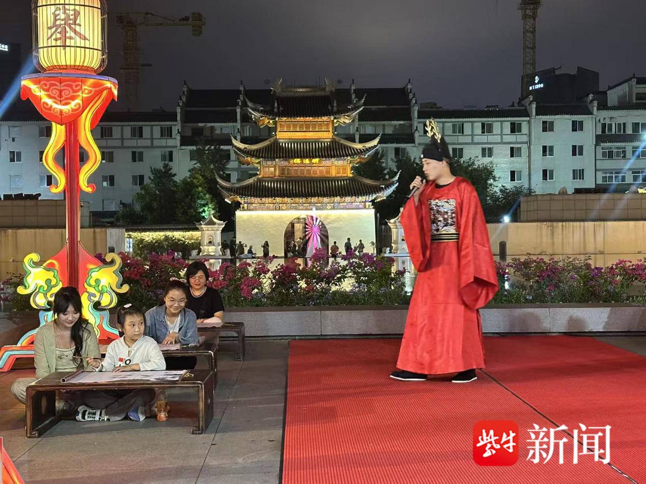 “没想到夫子庙还是这么热闹!既能看到最有诗意的中秋月,孩子还参与了各类儒学、科举主题活动,亲手做了非遗手作,这趟来得值!”10月6日晚南京夫子庙大成殿前,一场充满中华礼乐之美的佾舞表演正在上演,带着一家三口从武汉来夫子庙游玩的张先生一边举着手机录制一边向记者感慨说。
