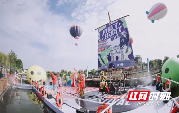 2025年靖港古镇大学生水上音乐周,芦江上刮起“青春风暴”。