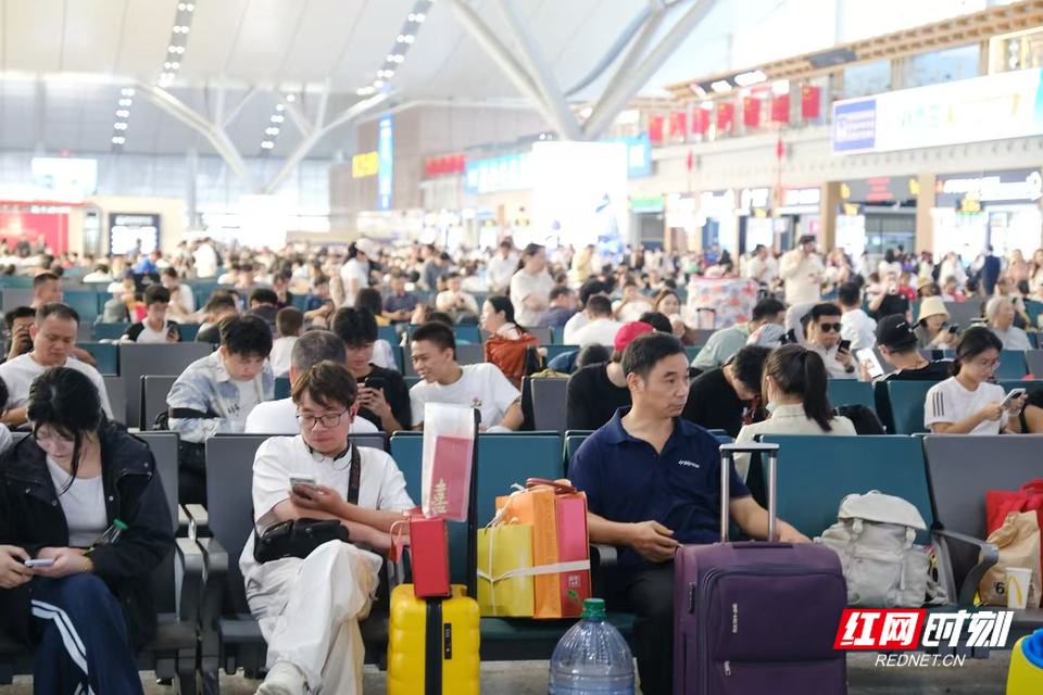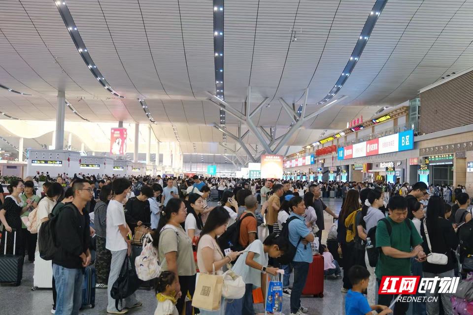 红网时刻新闻10月2日讯(记者 陈杰 刘志雄)10月2日,长沙高铁南站人流如织,国庆中秋长假的第二天,依旧是出行高峰。
