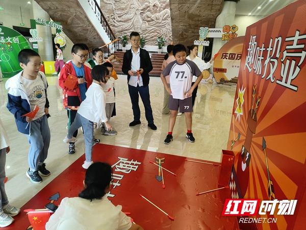 ▲国庆中秋长假,游客在岳阳市博物馆内体验蹴鞠挑战赛、趣味投壶、古法月饼制作等互动体验活动。