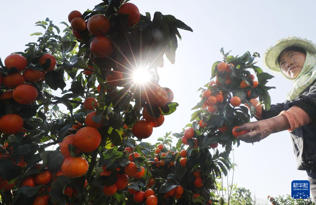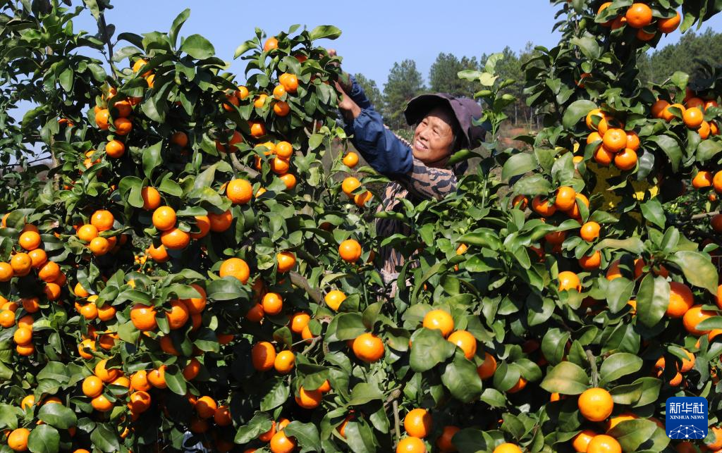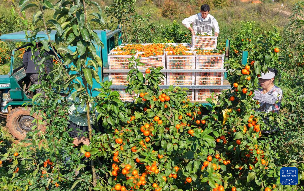 立冬过后,湖南省衡阳市衡南县花桥镇源氏农林柑橘种植基地种植的砂糖橘、脐橙、葡萄柚陆续进入成熟期,当地村民抢抓晴好天气采摘,供应市场。