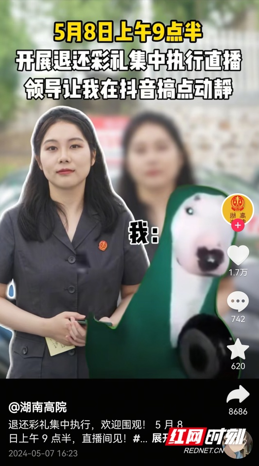 同年5月8日,湖南高院官方账号直播宁乡市人民法院“彩礼返还”集中执行行动,吸引274万网友在线围观。上海男子与长沙女子仅见面三次结婚,男方支付30余万元彩礼后,女方未共同生活且隐瞒育有子女事实,法院判决女方返还彩礼却遭拖延,最终执行人员依法将其带走。直播中,法官同步解读法律规定,网友评论“比《守护解放西》还受教育”。这种“以案释法”的方式,既维护当事人权益,也为群众划出“彩礼红线”。