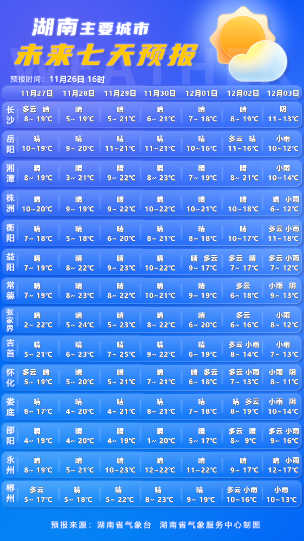 湖南最新天气预报