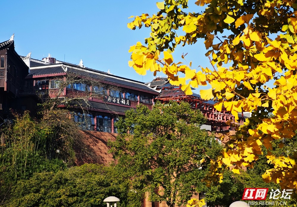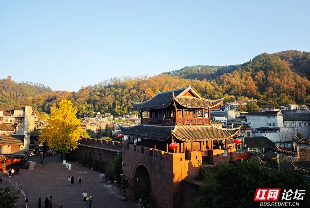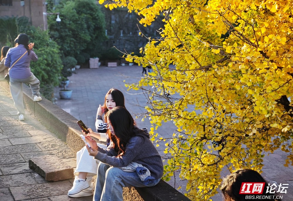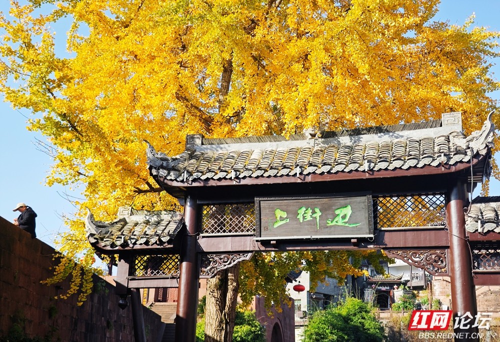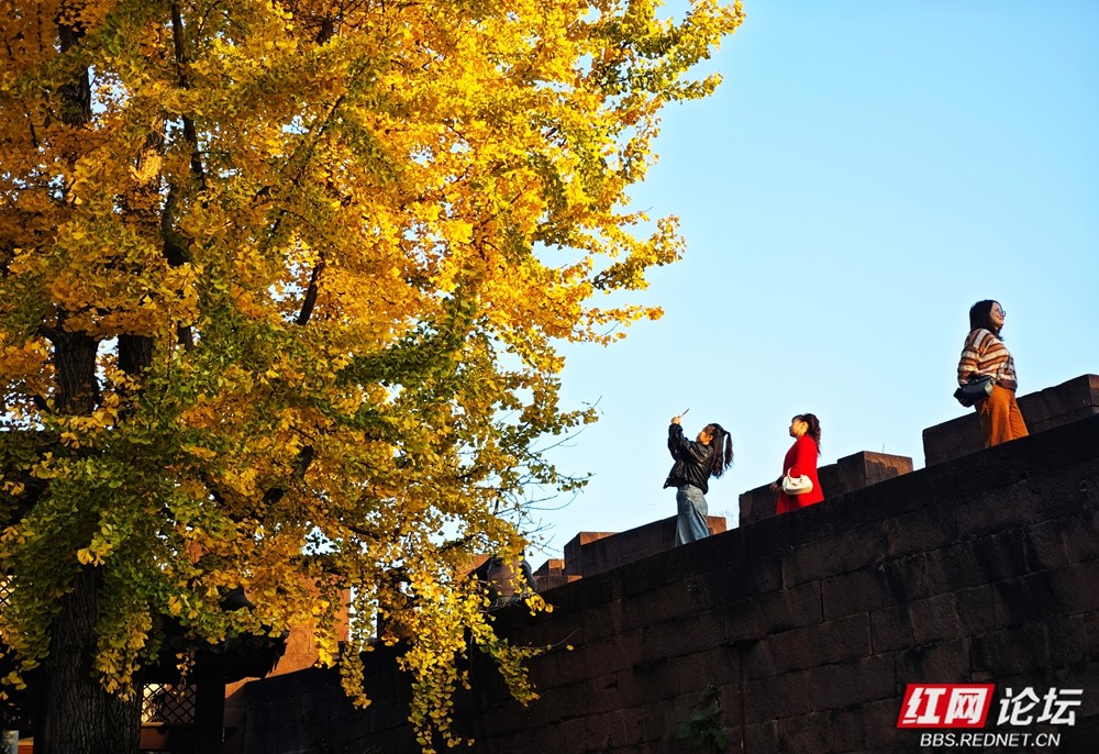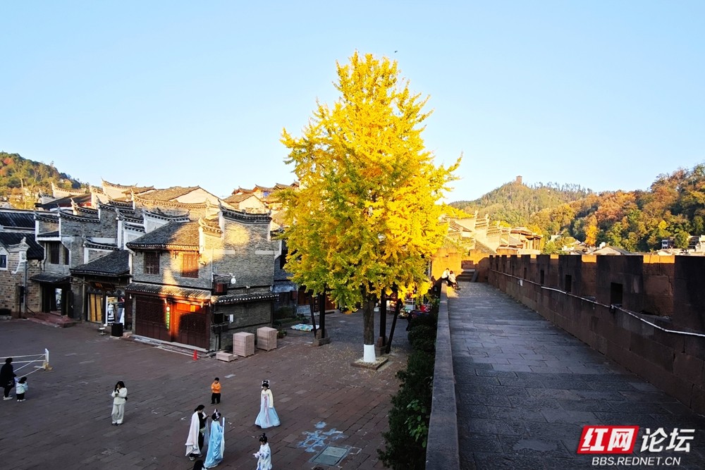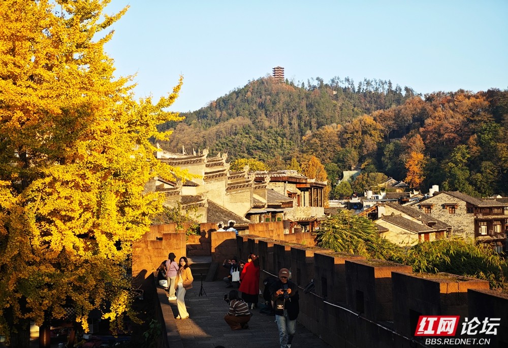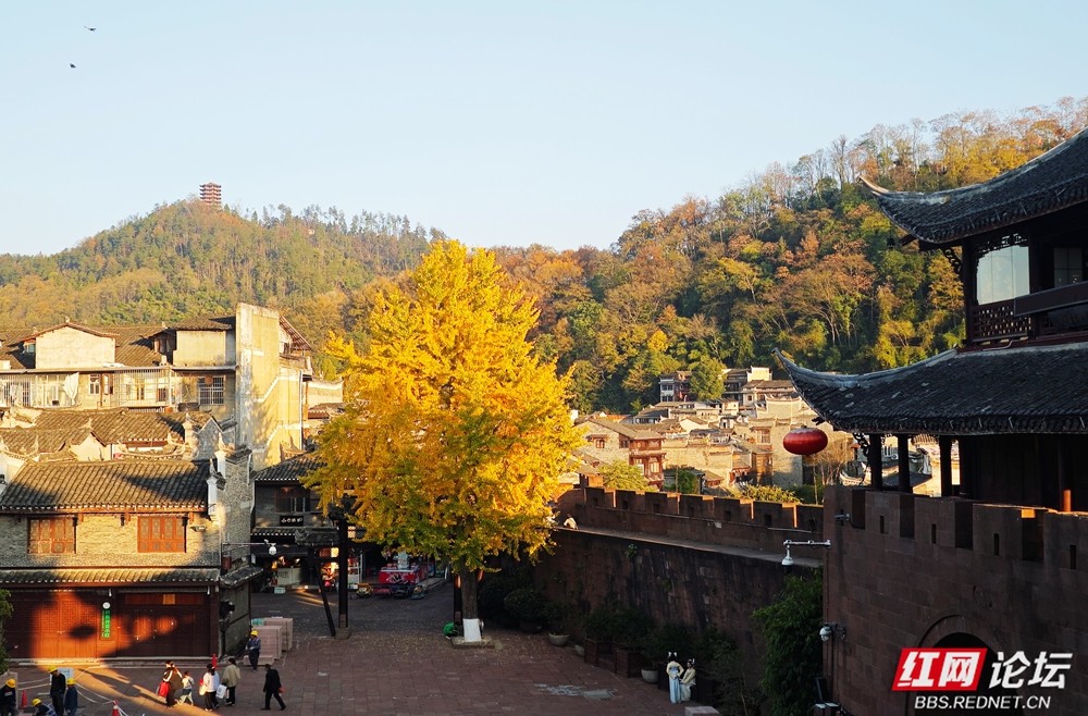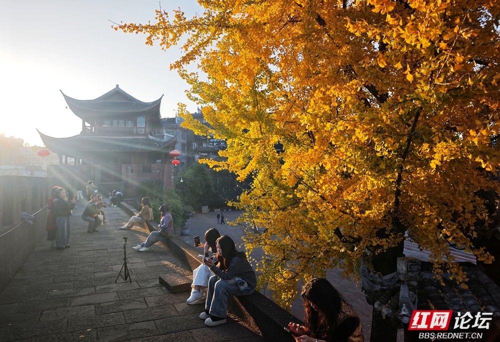 初冬凤凰古城“金”彩上线,银杏美景引游人打卡。(图源:滕建康)