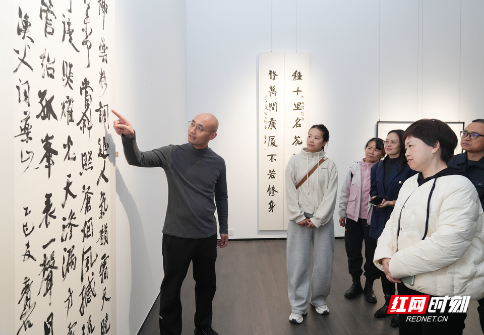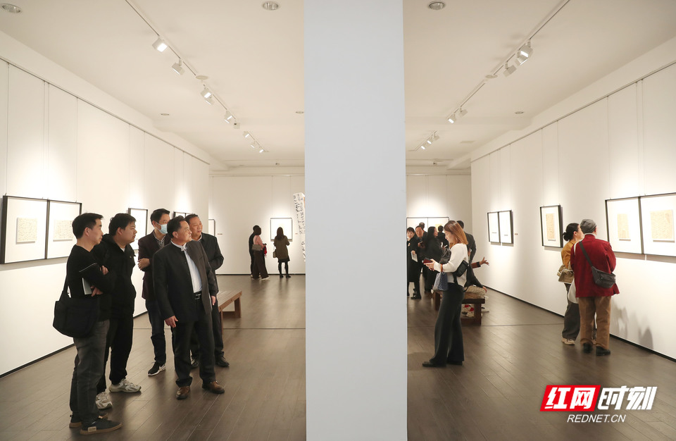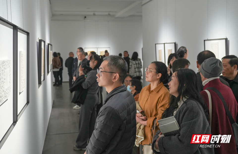 红网时刻新闻11月29日讯(记者 杨抒怀 陈杰)11月28日下午,“素处以墨——郭宏忠书法作品展”在湖南省画院开幕。本次展览为期8天,共展出90余幅书法作品,展现作者在传统笔墨与现代艺术理念融合方面的探索,吸引不少书法爱好者前往观展。