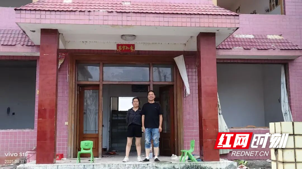 腾房倒地前,王凯云夫妇拍摄了一张与老屋的合照。