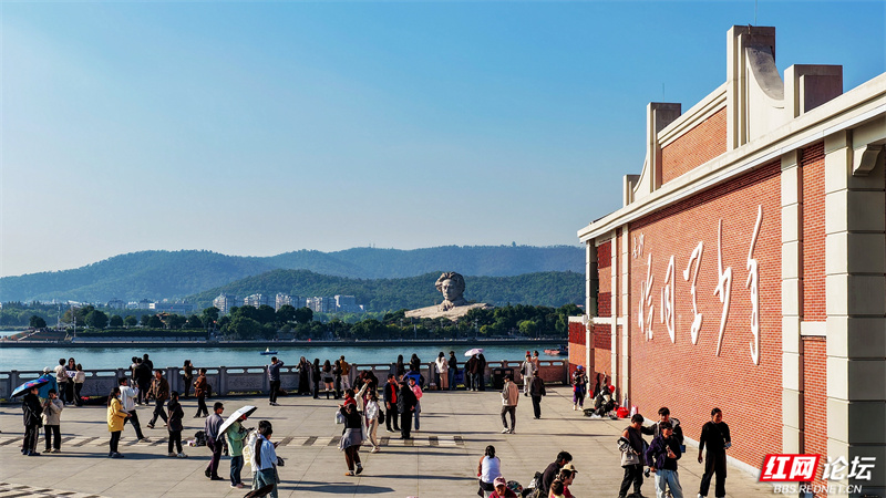 在湘江的温柔怀抱中,长沙以它独有的方式诉说着历史与现代的交融。远处,毛泽东青年艺术雕塑巍然矗立于江心小岛之上,如一位沉思的巨人,凝望着这座城市的变迁;近处,“恰同学少年”四个大字镌刻在红墙之上,仿佛在低语着青春的理想与时代的回响。