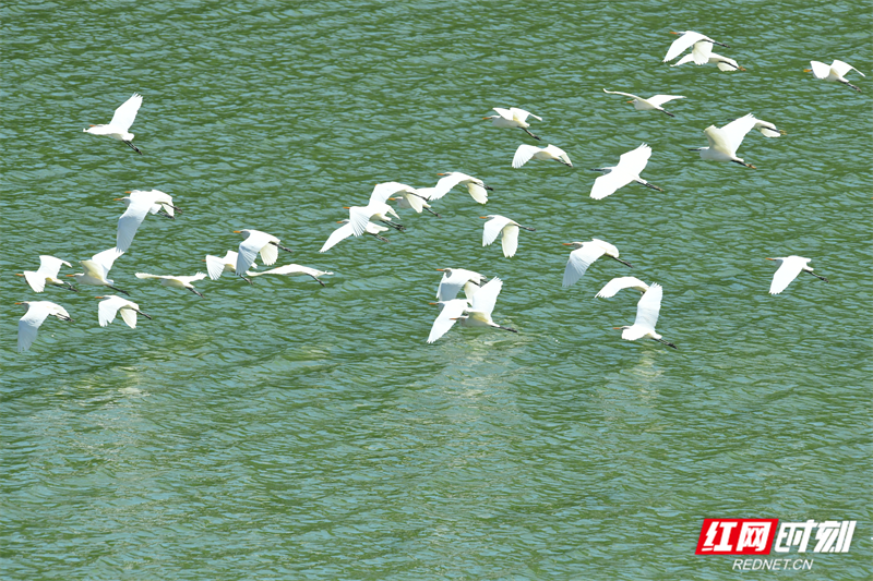 系统修复生态、全域治理生态,桂东县“一矿一策”修复历史遗留矿山,植被重建、土壤改良、边坡加固,提升区域生态韧性;累计上亿元“砸进”沤江、泉江、耒水,河道清淤、湿地修复、岸线生态化改造,让生态廊道“水清、岸绿、鸟栖”。同时,人工造林1.38万亩、种草1.2万亩,森林提质11万多亩……候鸟渴能寻到清洁水源、饿能找到“干饭食堂”。