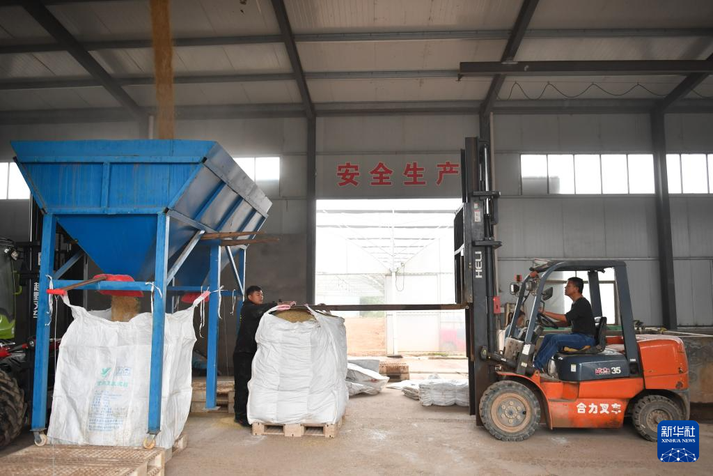 10月29日,邱彬(右)和父亲邱国清在查看烘干机运行情况。新华社记者 陈振海 摄