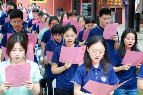 9月27日上午,湖南大学岳麓书院在文庙举行2025年本科生导师聘任仪式暨拜师礼,图为活动现场新生诵读学规。湖南大学供图