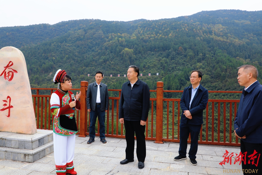 11月4日至7日,省政协主席毛万春率队在张家界市宣讲调研。图为毛万春在七十二奇楼调研。