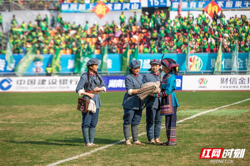 “半条被子”的故事搬上湘超舞台。(何雨杏 摄)