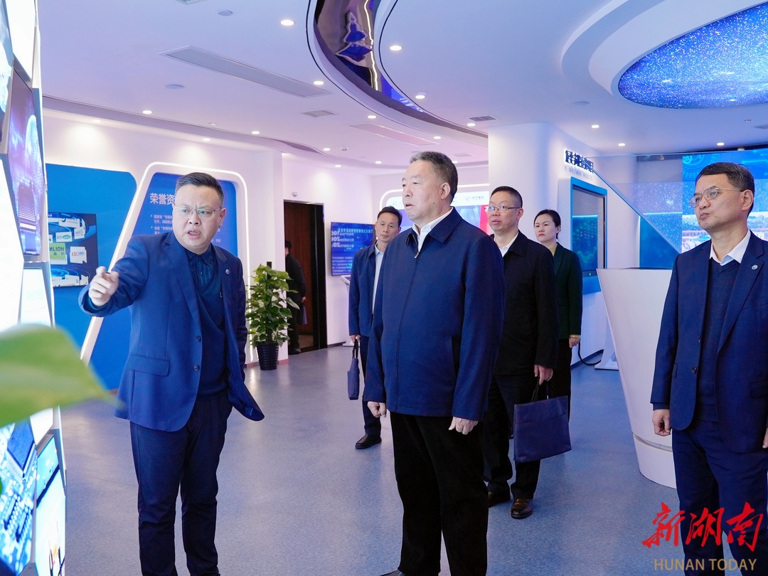 (12月16日,省政协主席毛万春率队来到湖南高新创投集团宣讲调研。图为毛万春在集团展厅调研。)