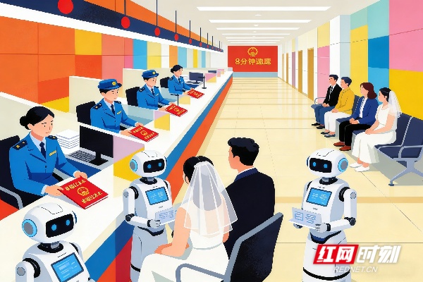 这份“简约浪漫”的背后,还有着坚实的支撑。除了化妆、服装、场地全免费,新人们还能获赠湘绣、珠宝等心意。各区县的婚姻登记点也纷纷“卷”起服务:复古打卡点、婚俗文化展、定制婚书……望城区甚至免费拍摄打印结婚照。长沙民政部门将平均办证时间从30分钟压缩至8分钟,让服务本身成为祝福的一部分。