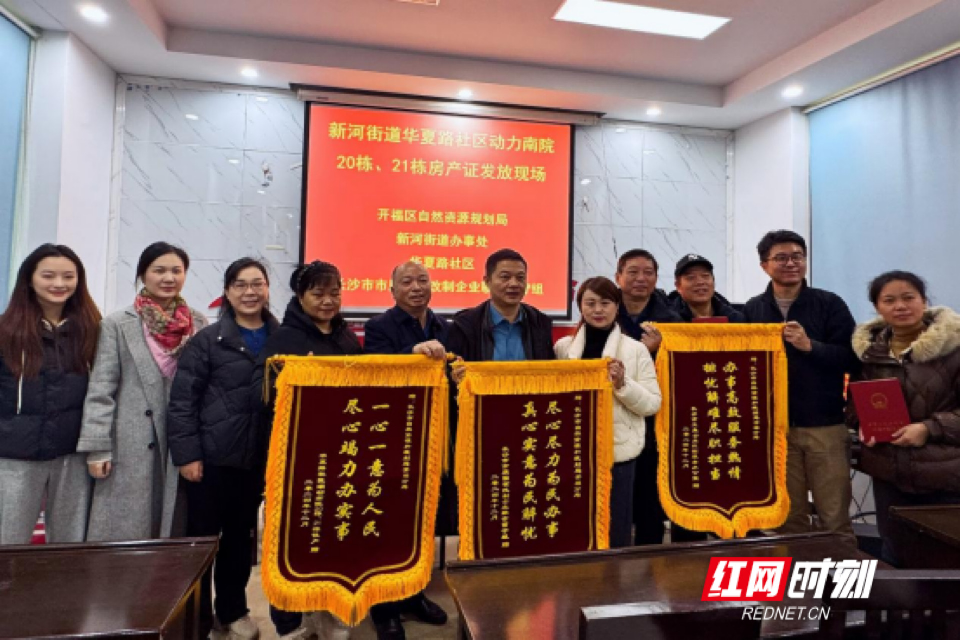 新河街道华夏路社区动力南院20栋、21栋房产证发放现场。