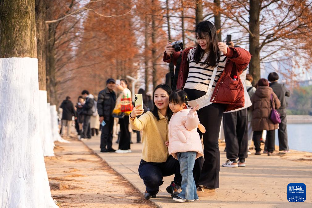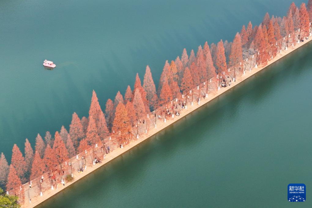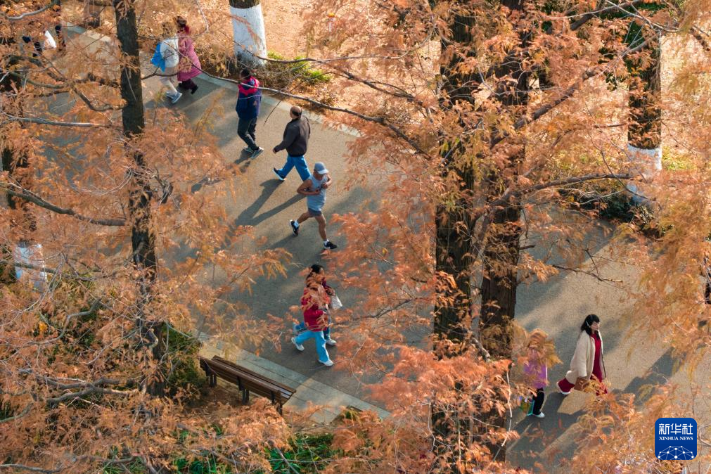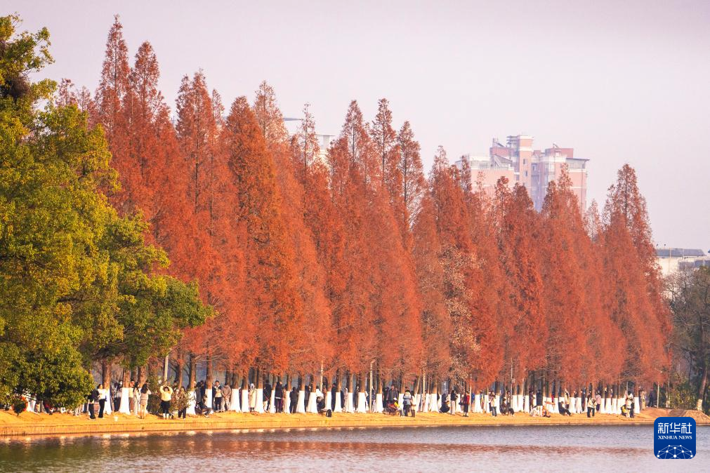 连日来,湖南省长沙市烈士公园的水杉树叶转红,在冬日暖阳的映照下,园内景色如画,吸引不少市民前来游玩打卡。新华社记者 陈思汗 摄
