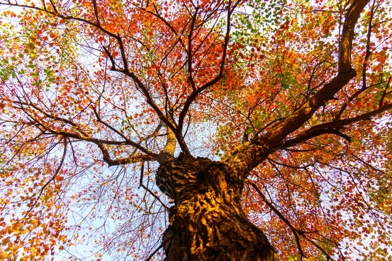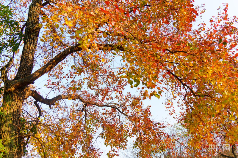 随着气温逐次降低,乌桕树迎来了一年中最美的观赏期。叶片仿佛被大自然的妙笔精心晕染,从最初的姜黄打底,渐次过渡为明媚的橙黄、浓郁的橘红,再到热烈的绯红、绛红,最终化作炽烈的血红与火红。十余种色彩交织错落,一树树乌桕宛如打翻的调色盘,深浅交融、浓淡相宜,在阳光的映照下,叶片闪烁着晶莹光泽,远远望去,绚烂夺目,尽显自然造物的精巧。市民或漫步赏景,或举着相机定格这份冬日限定的美好。