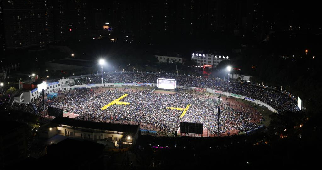 12月27日,球迷在永州市体育场观看“湘超”决赛直播。新华社发(郭磊 摄)