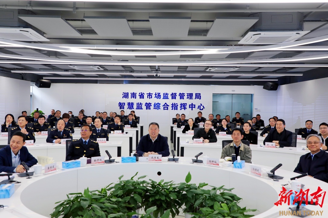 毛万春一行实地考察了省市场监管局智慧监管综合指挥中心和政务服务大厅,深入了解智慧监管、食品安全“互联网+AI监管”以及“证照联办”等情况。