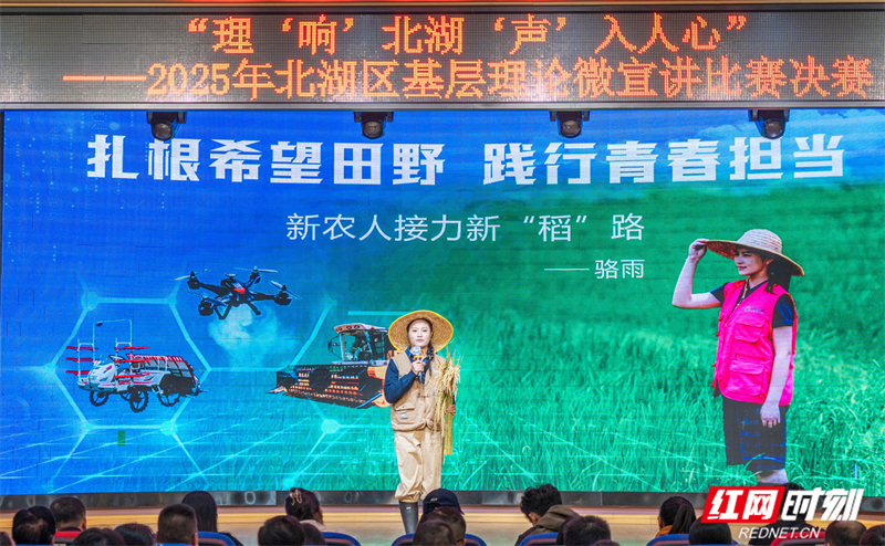 比赛结束,微宣讲没有划上句号。比赛成果转化,“北湖区基层理论宣讲人才库”26名入库宣讲员巡回开启了新一轮实践,进车间与工人探讨发展新质生产力,在地头与村民交流强农惠农政策。“以赛促讲、赛讲结合”,宣讲队伍源源不断地注入新鲜血液,微宣讲活动持续走深走实。