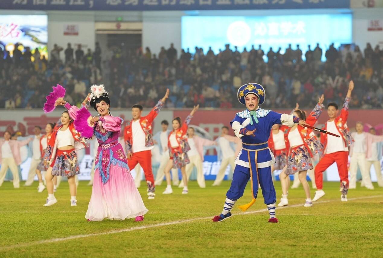 遗产在“活化”中重生,让历史可触可感可共鸣。保护,是为了让历史照亮今天。在武冈,随着《邵阳市武冈历史文化名城保护条例》施行,古城保护迈入法治化新阶段。修复后的西直街,白日是青石板与雕花木楼的历史长廊,入夜则化身为“大明芳华·锦绣非遗”的沉浸式剧场,2025年旅发大会期间带动周边消费激增。而这场文化的“活化”与“共鸣”在湘超赛场推向高潮,开幕式上,身着根据古籍复刻的“宝庆卫”明代甲胄的演员威武登场,历史的厚重感瞬间拉满。湘超联赛从一开始就超越了普通体育赛事,成为一座城市文化自觉与发展自信的集中展示,一场全民参与、共创共享的盛大节日——城步吊龙翻腾起舞,花瑶呜哇山歌响彻云霄。随着赛事推进,一幅邵阳的人文长卷徐徐展开:新邵县的“石马江号子”以粗犷豪迈的呐喊震撼全场;洞口县的“雪峰蜜桔”则将赛场变成了甜蜜的海洋;《崀山脐橙香》用舞姿讲述从8株母树到50万亩橙园的产业传奇;绥宁苗家姑娘们舞出了“中国竹子之乡”的万种风情……传统文化的现代表达,在此找到了完美节拍。邵阳花鼓戏《俏花鼓》在保留三百年曲牌韵味的同时,融入现代节奏,正如总导演阳阳所言:“非遗要焕发生命力,必须与时代脉搏同频共振。”《资江谣》《云山下的乡愁》等本土原创歌曲在湘超赛场唱响,将体育竞技的豪情升华为对家园共同的深情眷恋。
