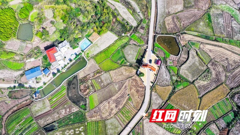 红网时刻新闻11月30日讯(通讯员 刘贵雄)近日,俯瞰湖南省永州市新田县骥村镇李家山村,阡陌纵横、色彩斑斓,大地“指纹”美丽如画。秋冬时节,新田县各地田园色彩鲜明,与道路、池塘、民居相映成趣,曼妙曲线绘就出一组组五彩“指纹”,构成了一幅幅旖旎的田园风光画卷。