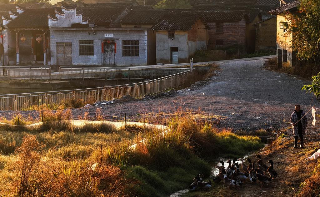 11月24日,郴州汝城县金山村村民在放鸭子。郴州,