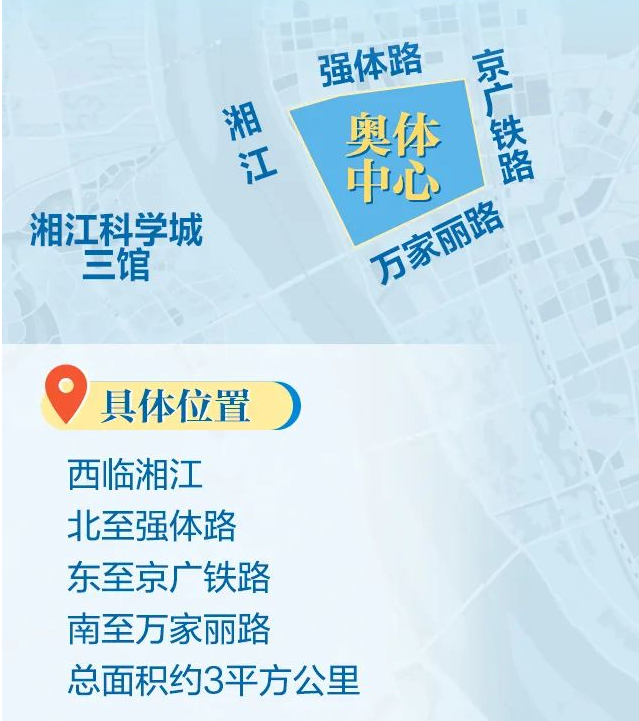 2029年,全运会将首次走进中部地区,成为湖南承办的规格最高、规模最大、影响力最广的综合性体育盛会。长沙奥体中心项目是第十六届全运会的主场馆,于今年4月27日正式开工建设。项目北至强体路、东至奥体大道、南临万家丽路、西至湘江大道,由长沙城市发展集团有限公司负责建设,中建五局、中建三局等联合体单位负责施工。