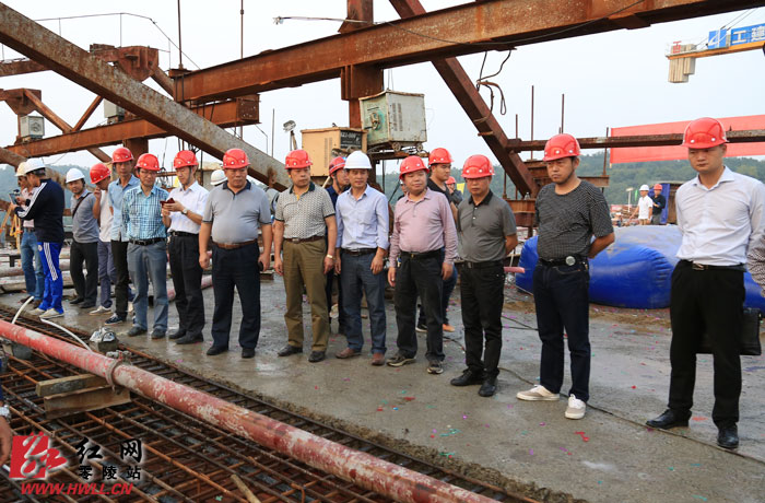 区人大副主任兼G322国道改线工程协调小组指挥长汤安权在仪式上讲话,他要求大桥建设的业主、设计、监理、监控及施工单位要以此次合龙仪式为契机,继续发扬吃苦耐劳的精神,攻坚克难、继续奋斗,在保证质量、保证安全、保证工期的前提下,争取大桥早日建成通车。